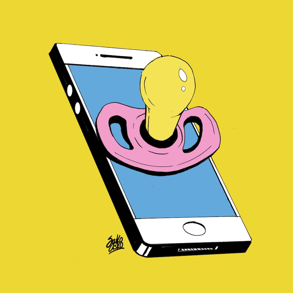 “It doesn’t have a great connection with what is called Colombian art,” he explains. “But equally, the palettes of colour that I use are related to the old bus placards, colours that are common in the tropical culture of Colombia.” A lot of it references the absurdity of modern life – dummies on cell phones, for example. Are you suckling the news right now on your cell phone?