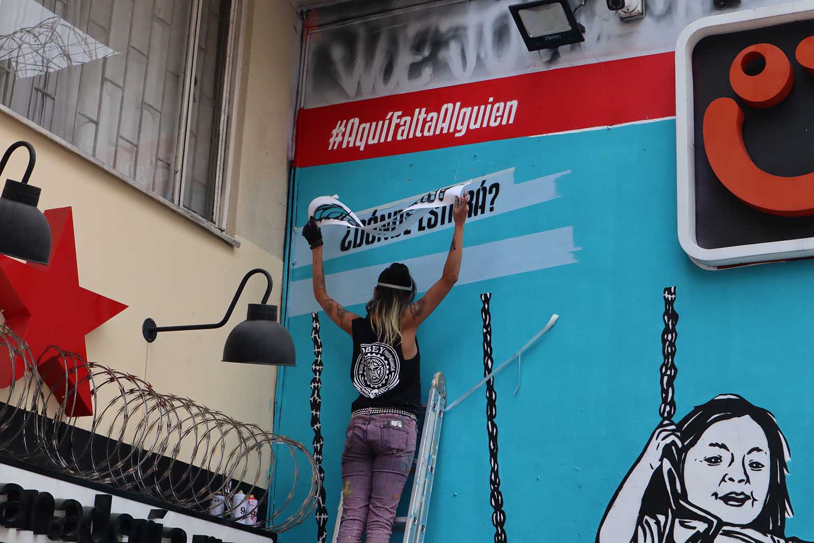 The campaign’s hashtag, #AquíFaltaAlguien (someone is missing here), is stencilled across the top of the mural. It is hoped that this, along with the visual appeal of the artwork, will help spread its message not just across the walls of Bogotá, but across social media, to reach other regions and even nations.