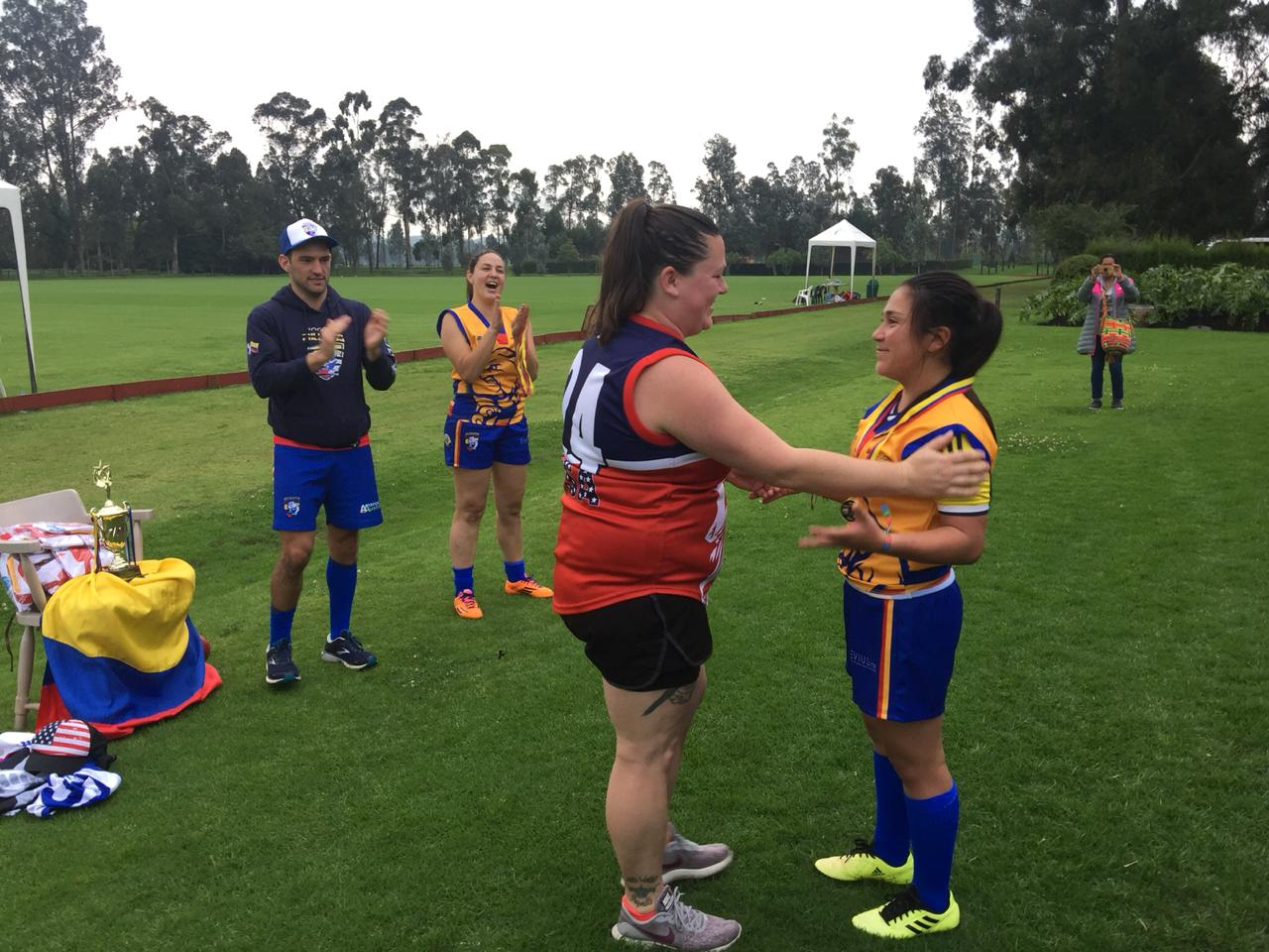 The match was a huge step in the development of Australian Rules football in Colombia, the women’s team having only been founded in February this year and already boasting a membership of 22 players, all but one of whom are Colombian nationals. The women’s team was set up in conjunction with the Colombian charity organisation Buen Punto, which provides weekly Australian Football training to children under state care in the capital, as well as promoting surfing in Chocó, one of the most impoverished regions of the country. The men’s team has been in existence since 2015 and has competed internationally against teams from Austin, Denver and Santiago de Chile.
